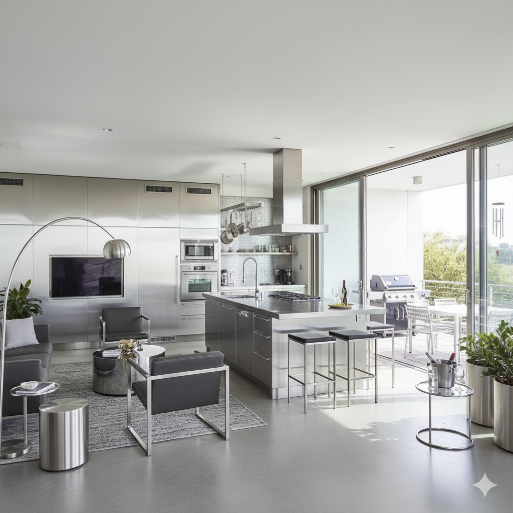 ריהוט ביתי מנירוסטה אינו רק עמיד ופרקטי, אלא גם אסתטי במיוחד. הגימור המודרני, המבריק או המוברש, משתלב בהרמוניה עם מגוון רחב של סגנונות עיצוב – החל מהמינימליסטי והתעשייתי ועד לסגנון כפרי מודרני, עם שילוב נכון של חומרים. הנירוסטה מעניקה תחושה של קלילות ואווריריות לחלל, ומשמשת כאלמנט עיצובי חזק בפני עצמה. יתר על כן, היא מאפשרת עיצובים נקיים וקווים ישרים, התורמים לתחושת סדר וארגון.